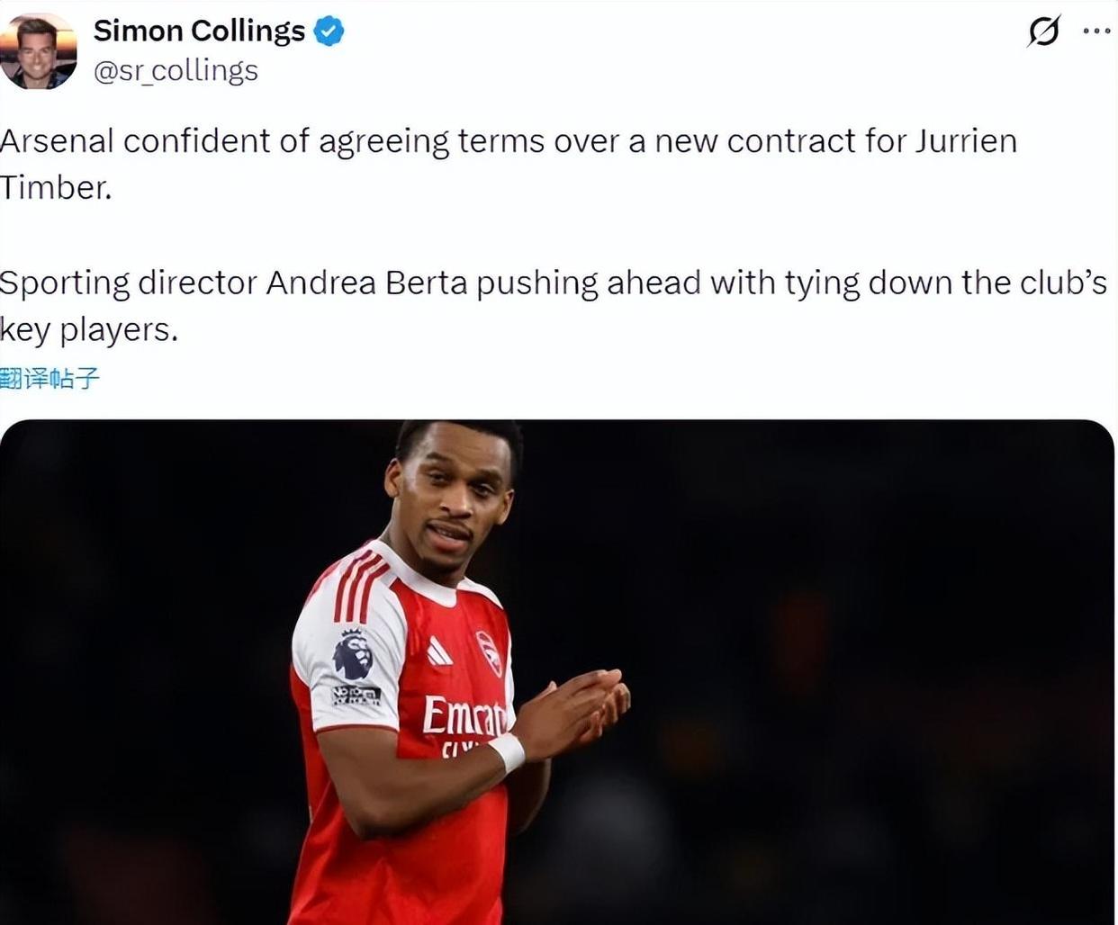 说点让东说念主释怀的事儿。据可靠音尘,阿森纳正在和廷贝尔谈续约,况兼进展非常顺利。天然廷贝尔的协议2028年才到期,但俱乐部念念提前给他一份新协议,算是对他出色显露的奖励。