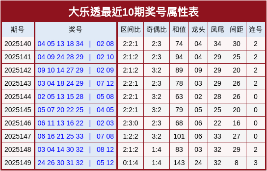 奇偶分析:上期前区开出偶数较多,本期要点祥和奇数前区大热,参考奇偶比3:2。