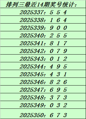 上期缅想:枚举三第2025350期奖号:673。和值16,跨度4。