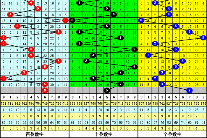 百位:1、2路号较热,本期防0路号反弹,热心6。
